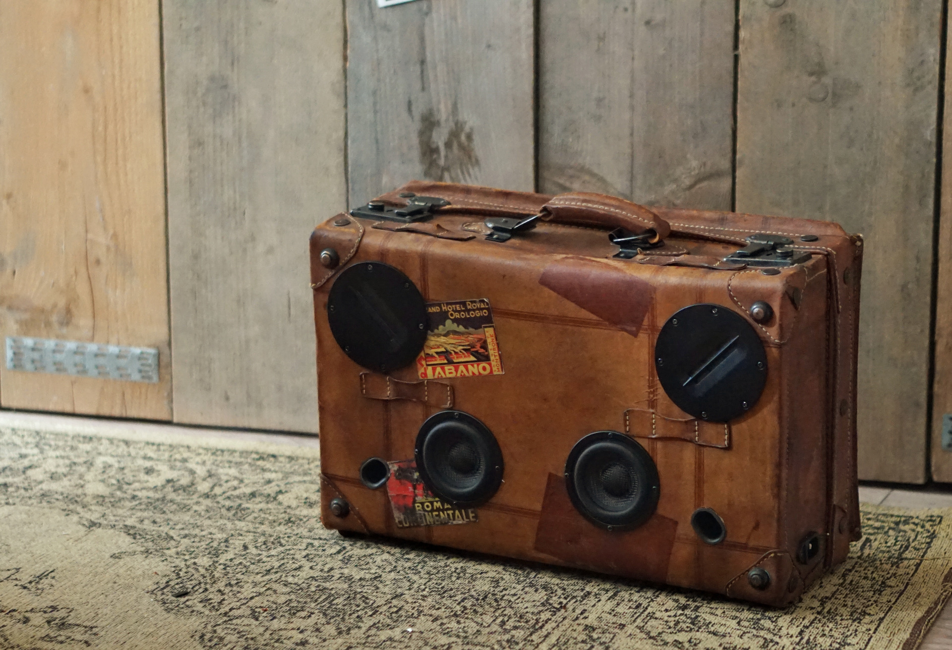 De koffers die ik gebruik om de speakers te maken zijn echte antieke koffers die waarschijnlijk al een hoop verhalen zouden kunnen vertellen. Door ze met veel zorg en aandacht te voorzien van speakers en subs geven we ze een kans om hier nog een hoop spannende momenten aan toe te voegen